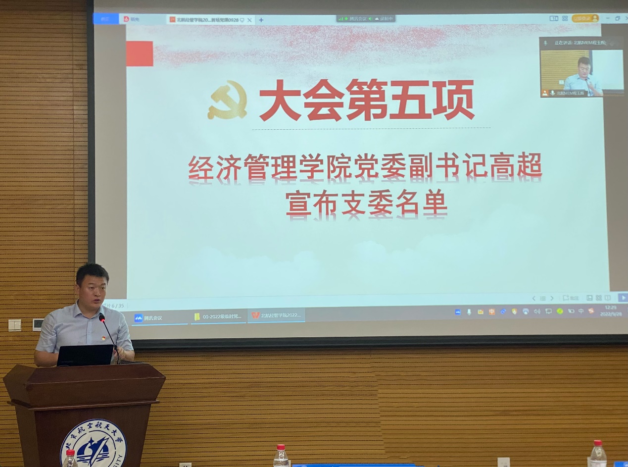 北航beat365亚洲版官网党委副书记高超宣读北航MEM2022级非全日制研究生临时党支部书记及支委名单。北航MEM2022级非全日制研究生临时党支部书记赵超同学代表支部成员就政治思想工作郑重表态:自觉在思想上、政治上、行动上同以习近平同志为核心的党中央保持高度一致;向2020级、2021级非全日制研究生临时党支部学习支部建设经验,整体提升党员队伍政治素质和业务素质;积极组织开展多种形式的学习活动,坚持把学习作为提升工作能力的首要任务;以党员标准严格要求自己,做好党员先锋表率作用。