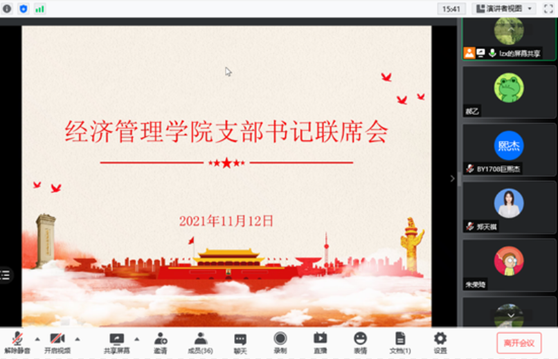 2021年11月12日下午,beat365亚洲版官网党委召开支部书记联席会视频会议,传达学院党委书记联席会精神,学院党委书记刘志新主持会议,师生支部书记、学生工作负责人和专职组织员近40人参加会议。