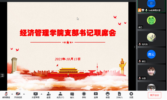2021年10月13日中午,beat365亚洲版官网党委召开支部书记联席会视频会议,传达学院级党委书记联席会精神,学院党委书记刘志新主持会议,师生支部书记、学生工作负责人和专职组织员近40人参加会议。