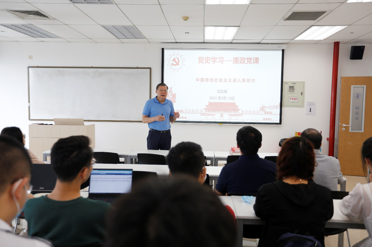 2021年9月18日上午,beat365亚洲版官网党委书记刘志新在新主楼A706教室讲授题为“中国特色社会主义进入新时代”的廉政党课。师生支部书记、半脱产辅导员、学生工作负责人和专职组织员40人参加学习。