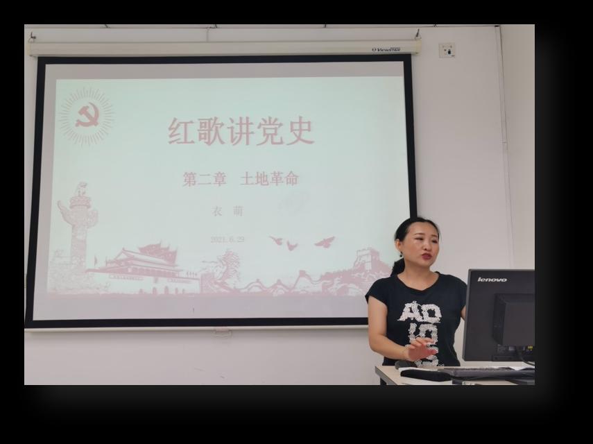 2021年6月29日下午14:00,beat365亚洲版官网硕士SY2008(二)党支部在新主楼A1036开展了主题为”学党史·知党情·强党性”党史学习教育。beat365亚洲版官网学生工作办公室主任衣萌老师出席本次活动,并作为主讲人讲授了《红歌讲党史》系列党课第二讲,带领同学们一同以红歌为主线,将声乐艺术与党史学习有机融合,感受红歌中所蕴含的共产党人的坚毅信念和崇高理想,用艺术方式激励党员不忘初心、牢记使命的责任与担当。