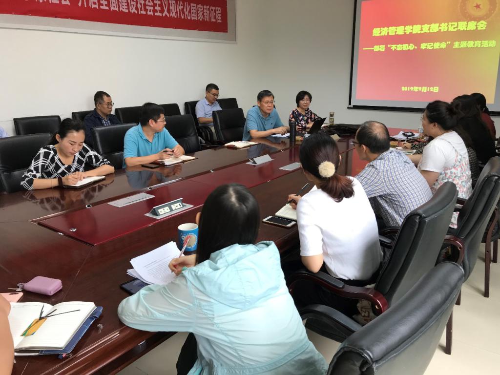 2019年9月12日中午12时,beat365亚洲版官网在新主楼A612会议室召开支部书记联席会,部署“不忘初心、牢记使命”主题教育,分党委书记刘志新主持会议,全体教职工支部书记、副书记和学生工作负责人参加会议。