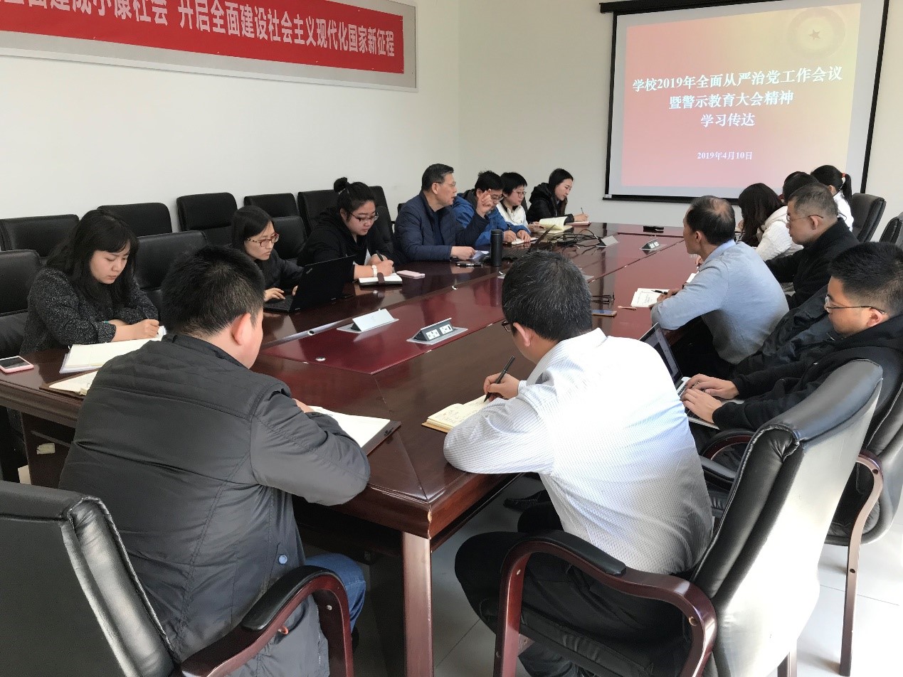 会上,刘志新书记传达了学校2019年全面从严治党工作会议暨警示教育大会精神。他指出,学院基层支部要以政治建设为统领开展组织工作,落实巡察整改任务,规范组织生活流程,持续强化党风廉政教育,以坚定的立场、坚强的意志、坚决的行动,不断推动全面从严治党向纵深发展。结合大会通报的典型案例以及何新洲书记和曹淑敏书记的讲话,刘志新强调,各支部要做好会议精神的传达和学习工作,进一步增强党员师生对全面从严治党重要性的认识,保证基层党组织的战斗力,确保学校和学院的年度工作部署和要求不折不扣地落实。同时,进一步深入学习贯彻习近平新时代中国特色社会主义思想和全国教育大会精神,增强师生党员全面从严治党的思想自觉和行动自觉。