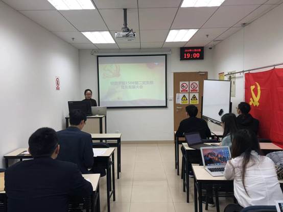 2018年11月22日晚19点,本科生1508第二党支部在新主楼A1138召开党员发展大会及预备党员转正大会。会议主要讨论是否接收刘仁鹏同志为预备党员及是否同意史珈睿等三名同志按期转为正式党员。本次会议由1508第二党支部书记马倩茹主持。