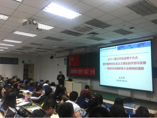 北航研究生党校“求真”分部第期入党积极分子培训第一次党课于2018111日晚630分在主M302教室顺利进行来自25个不同学院的385名入党积极分子参加了本次党课的学习。本次党课邀请到了北航经管学院党委书记刘志新教授作为主讲嘉宾为入党积极分子讲授“从十一届三中全会到十九大看中国特色社会主义理论的开创与发展——兼谈对全国教育大会精神的理解”主题党课。经管学院研究生指导主任单伟副教授主持了本次党课