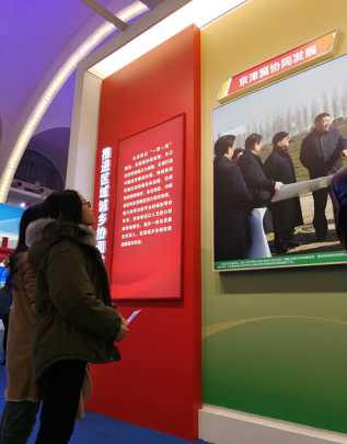刚进入主展厅,映入眼帘的就是一个大屏幕,上面轮播着中华儿女的幸福模样、经济发展的缩影以及中国在世界舞台上的表现等。