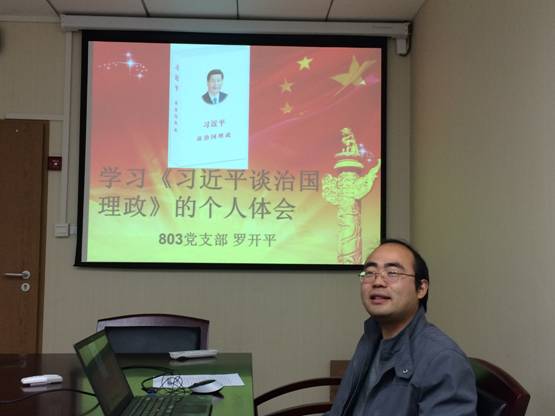 再次,罗开平同志以“学习《习近平谈治国理政》的个人体会”为主题对习近平总书记2012年11月15日至2014年6月13日的讲话、谈话等信息进行了系统的介绍,并提出了自己的体会,“就是科学技术必须同社会发展相结合,学得再多,束之高阁,只是一种猎奇,只是一种雅兴,甚至当作奇技淫巧,那就不可能对现实社会产生作用”。