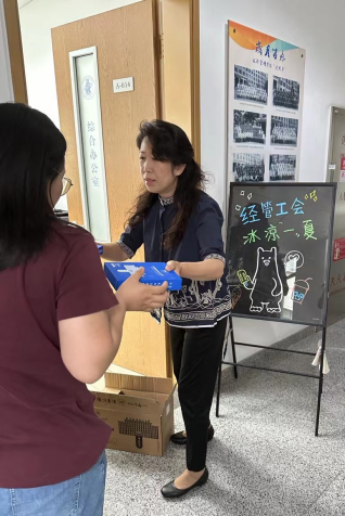 在炎炎夏日里,经管学院工会于7月4日下午在新主楼经管学院6层成功举办了“冰凉一夏”快闪活动,为全体教职工送上了一份清凉的心意——“北航文创雪糕”。此次活动吸引了八十余位教职工参加,现场气氛热烈,充满了欢声笑语。