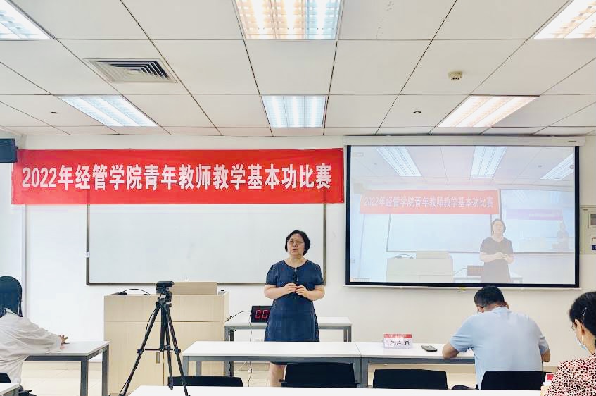 6月21日下午,beat365官网在新主楼A706举办了“2022年经管学院青年教师教学基本功比赛”,同时通过腾讯会议面向全院全程现场直播。