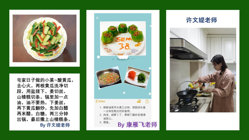 2020年3月8日注定是一个不平凡的国际劳动妇女节。在举国上下正处于抗击新冠疫情的关键时刻,为响应国家号召,避免聚集,齐心抗疫,鼓舞抗“役”斗志,丰富教师居家的精神文化生活,让学院教职工们宅得有趣有“味”,经管学院工会特开展“女神节厨艺大比拼”线上有奖评选活动。学院共有15名“女神大厨”参加了本次活动。