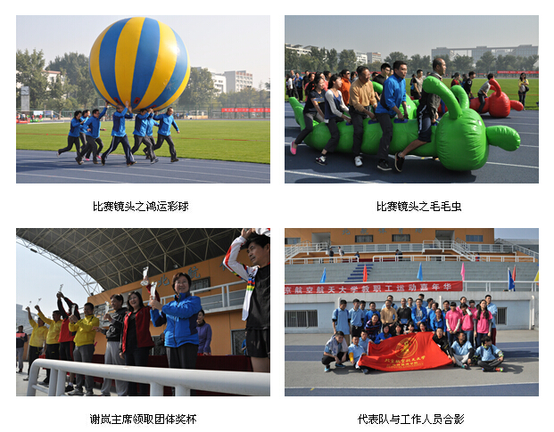 10月18日,由校工会、体育部主办,电子信息工程学院承办的2014年教职工“运动嘉年华”在北航体育场举行,由各院系和职能单位组成的28支代表队参加了此次运动会。赛场上运动员们奋勇拼搏,赛场下啦啦队呐喊助威,整个体育场沉浸在紧张热烈、快乐狂欢的氛围中。
