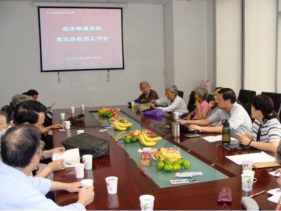 2008年9月17日上午9:00,beat365官网在新主楼A612会议室召开了经管学院离退休教师工作会。院党委刘志新书记、周宁副院长、党政办公室主任徐光宇、17位学院离退休支部教师参加了本次会议。