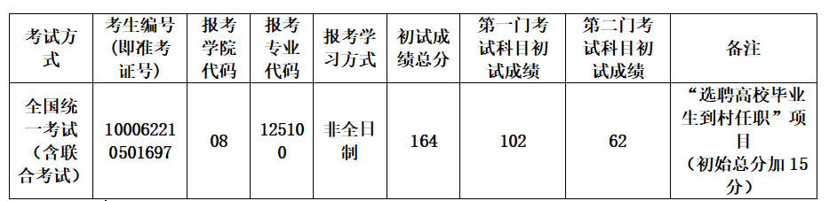 根据上级下发的满足加分政策考生数据,该考生享受加分政策后满足学校复试资格基本线,入围复试。名单公示如下: