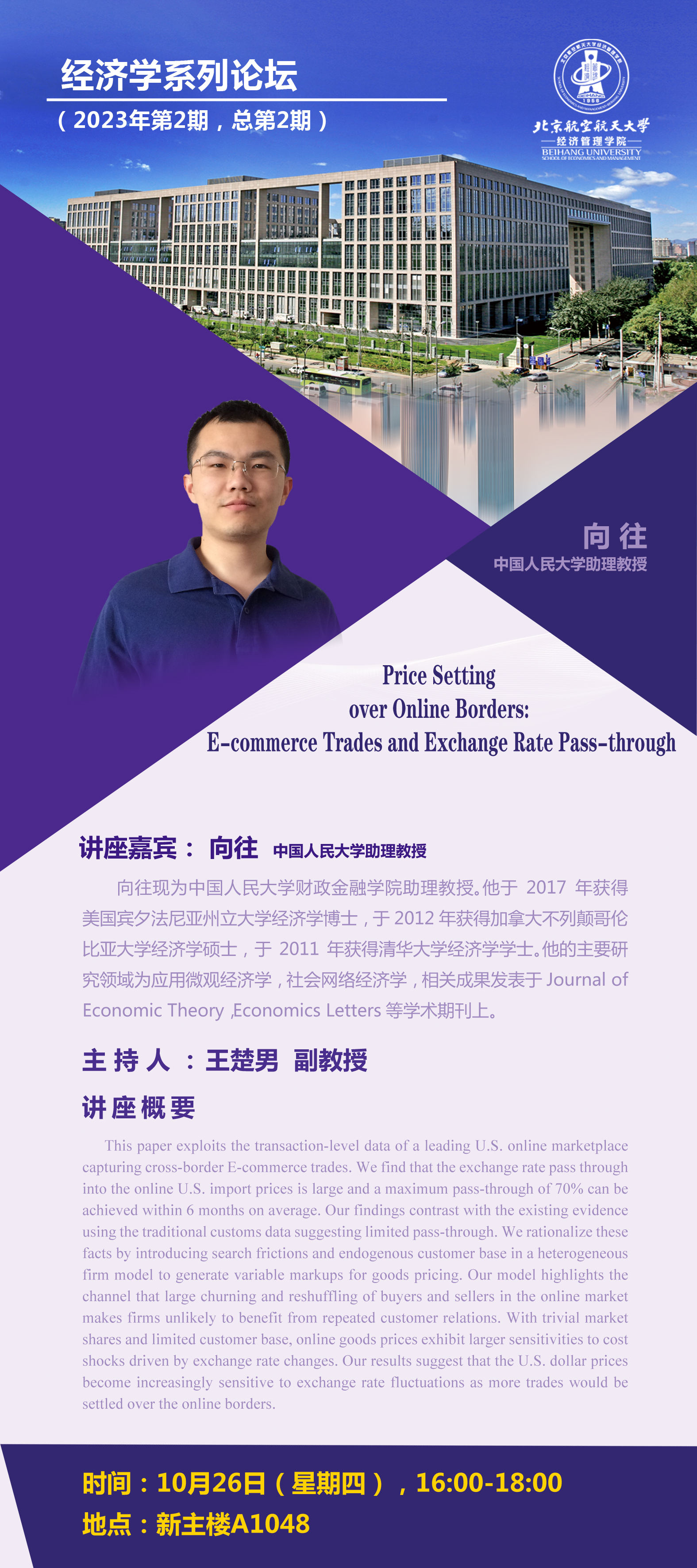 【经济学系列论坛】Price Setting over online Borders:E-commerce Trades and Exchange Rate Pass-through
