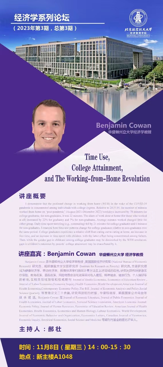 【经济学系列论坛】Time Use, College Attainment, and The Working-from-Home Revolution (居家办公革命下大学学历人群的时间利用问题研究)