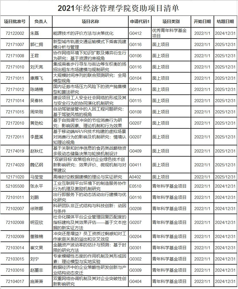 其中,朱磊教授获优秀青年科学基金项目资助;郭仁拥、王君、刘天亮、康雁飞、陈静楠、吴春林、周荣刚、黄劲松、李晨溪、赵秋红、魏亿钢、马莹莹共12位老师获得面上项目资助;刘鹏、徐琳娜、明亚欣、董雅楠、崔文昊、刘宁、赵墨非、施萧萧、张永平共9位老师获得青年科学基金资助。本年自然基金项目获批数再创历史新高。