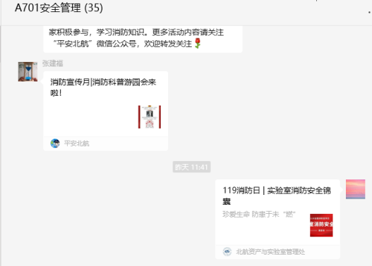 11月6日下午14点线上组织动员师生参与了消防安全专项培训,并组织师生通过“平安北航”公众号,关注“消防宣传月”专栏,开展针对性的科普教育和典型火灾警示教育。