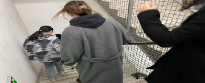 图8:实验室学生遇到火情快速从楼梯疏散逃生