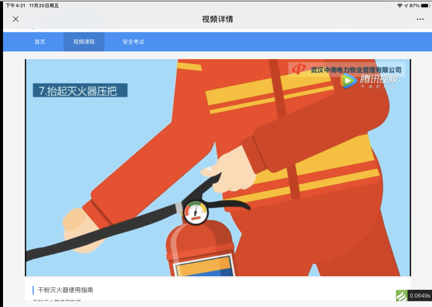 根据学校印发的《2020年今冬明春火灾防控工作方案》通知,结合“119宣传月活动”,要求组织开展线上消防培训(网址:http://10.111.2.158/ )--师生安全培训系统,主要通过观看在线宣传教育视频,在线进行一次消防安全考试的活动。