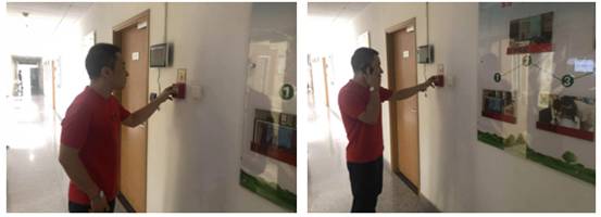 (1)由A701学生勒杰模拟发现本实验室有火情后,第一时间按动楼道手报,同时拿起电话拨打物业中控室电话“82339090”报警:新主楼A座701实验室发生火情,火势较大,请速来扑救。