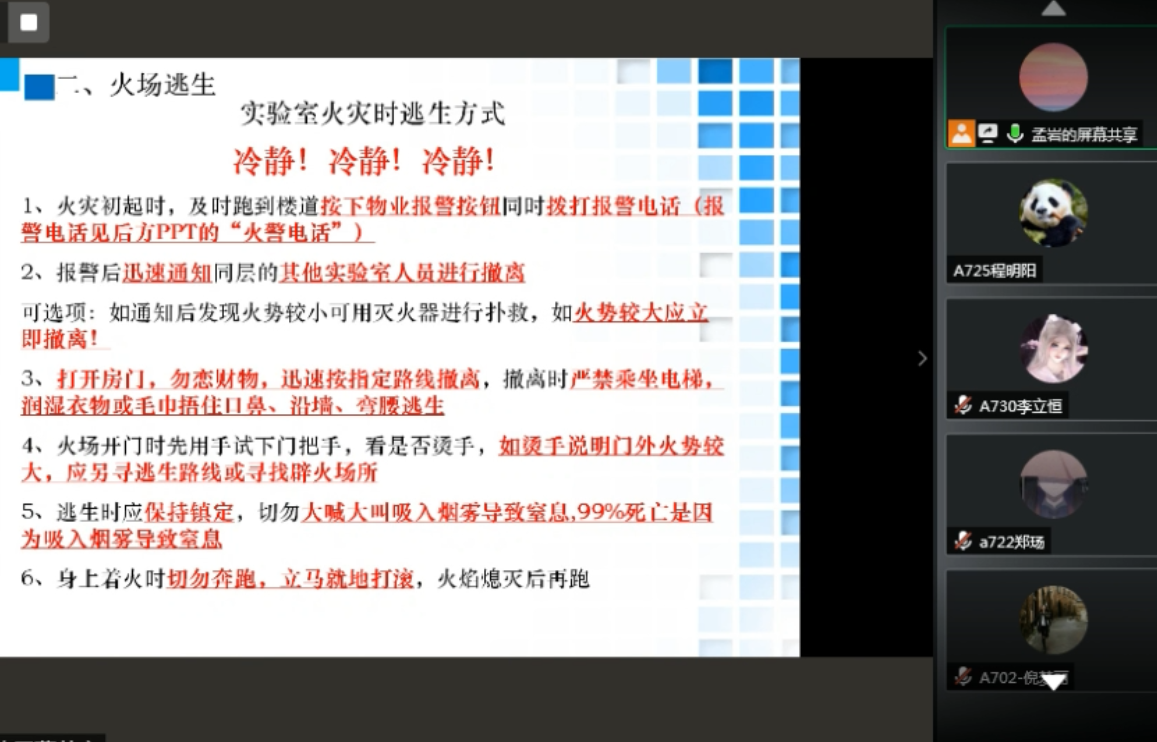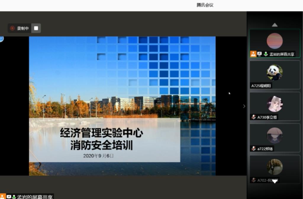 beat365官网实验中心于2020年9月6日上午10点通过腾讯会议在线组织实验中心有注册机位的同学参加消防安全培训(1学时课程),本次培训课由孟岩老师主讲。