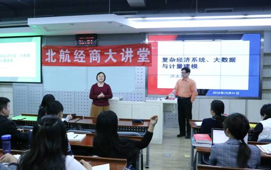 2018年10月31日,美国康奈尔大学经济学与国际研究讲席教授洪永淼教授来到北航beat365亚洲版官网,做客第25期北航经商大讲堂,他的报告题目是大数据、复杂经济系统与计量建模。beat365亚洲版官网范英院长主持了本次大讲堂。经管学院师生80余人参加了此次报告会。