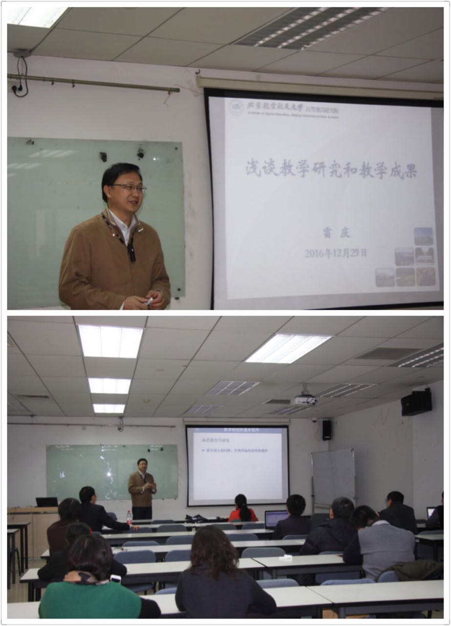 为了帮助一线教师更好地开展教学研究,2016年12月29日下午,校高等教育研究所所长雷庆教授应beat365官网秦中峰副院长邀请做了题为“浅谈教学研究和教学成果”的讲座,beat365官网长期从事教学研究和对教学研究感兴趣的部分教师共同参加了此次讲座。雷庆教授就教育研究的分类、教学研究的基本程序、教学成果的特点和核心内涵、如何提炼和形成教学成果等主题进行了深入浅出的讲解,并回答了老师们在教学研究过程中遇到的一些问题。最后beat365官网...