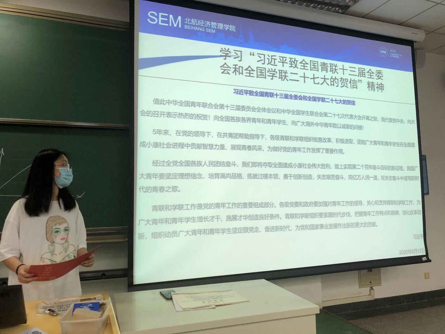 经管学院2018级本科生开展学习“习近平总书记致全国青联十三届全委会和全国学联二十七大的贺信”精神专题活动