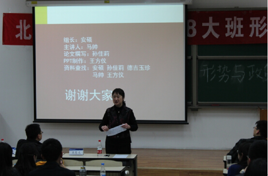 2015年4月10日星期五晚六点二十分,教三411教室里已经坐满了学生,他们正热切期盼着本学期第一次形势政策课的开始。