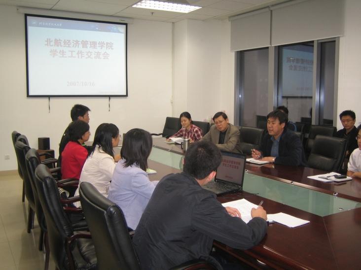 2007年10月16日晚7:30分,经管学院党委在新主楼A座612召开本科生辅导员学生工作交流会,会议由院党委副书记姚伟龙主持,经管学院党委书记刘志新教授出席会议。