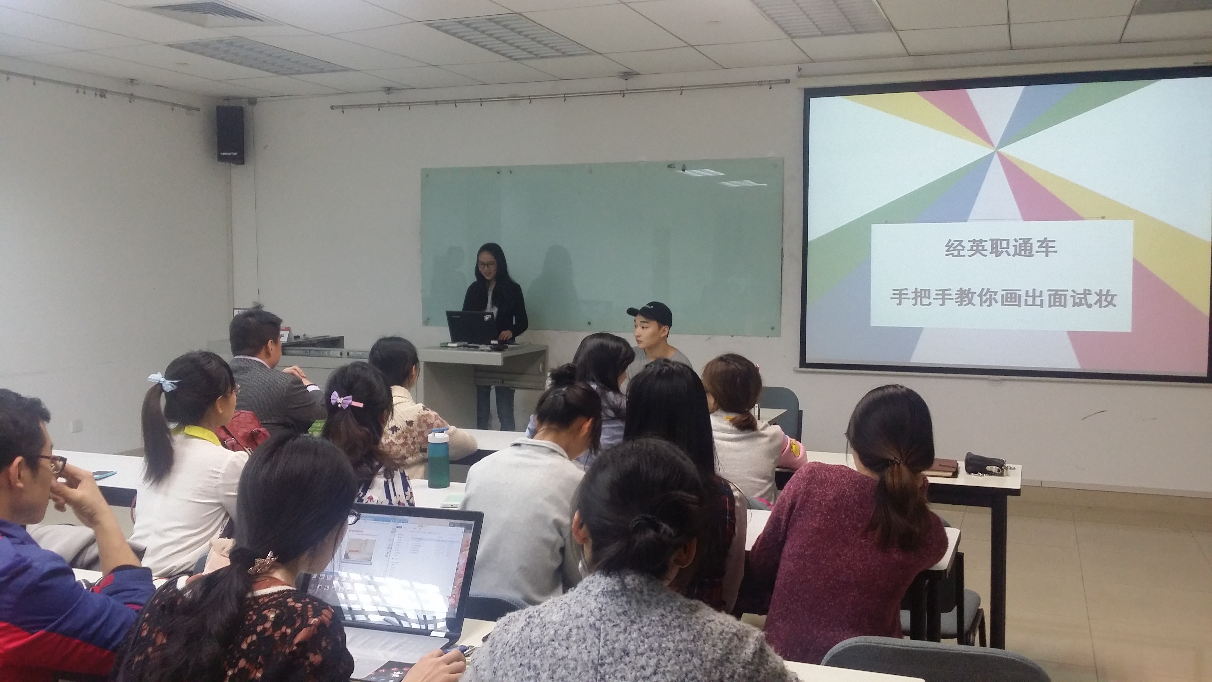 2015年3月25号晚7点,由北航经管学院职业发展中心主办、北航经管学院经英荟承办的实习“职通车”系列交流会—手把手教你化出面试妆活动在新主楼A1028成功举办。