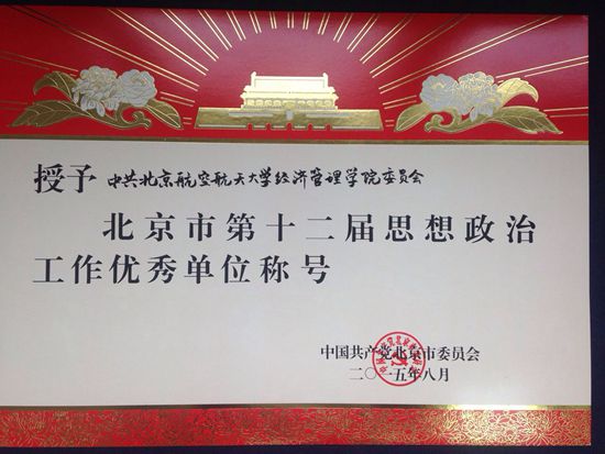 日前,中共北京市委作出关于表彰市第十二届思想政治工作优秀单位、优秀思想政治工作者的决定,授予beat365亚洲版官网经管学院党委“北京市思想政治工作优秀单位”称号。