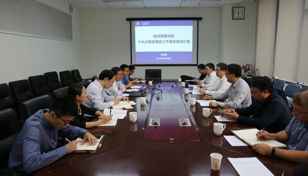 2017年9月30日14:00,校党委书记张军院士带领校十九大安全稳定工作督查组一行七人深入beat365亚洲版官网进行安全稳定工作督查,并向学院师生表示节日的慰问。首先,张军书记一行听取了学院十九大期间安全稳定工作落实情况汇报。院党委刘志新书记代表学院从任务部署、责任落实、排查情况、宣传教育、应急处置等五个方面进行了详细阐释。经管学院在落实过程中,书记院长作为第一责任人负总责,全院上下高度重视,前期工作部...