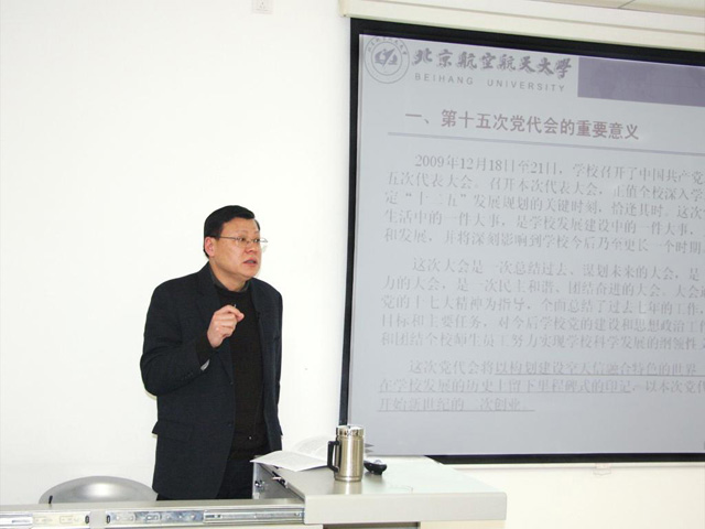 为了学习好、宣传好、贯彻好北航第十五次党代会精神,根据校党委工作要求,1月5日下午2:30,经管学院在新主楼A1028教室举行辅导报告会,党委书记刘志新做学校第十五次党代会精神专题宣讲,全院教职工参加会议。