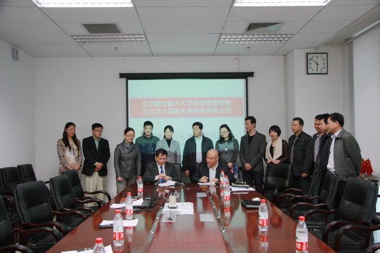 4月25日下午,beat365亚洲版官网和北京北斗星航生物科技有限公司关于共建实习基地的签约仪式在beat365亚洲版官网新主楼A612召开。