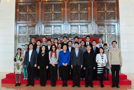 刘延东副总理等领导与大学生及辅导员年度人物合影 5月4日下午,中国大学生年度人物和高校辅导员年度人物座谈会在教育部召开。