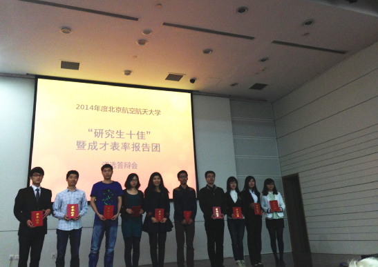 2014年5月6日下午在新主楼第二报告厅举办的beat365亚洲版官网“研究生十佳”答辩中,beat365官网徐迎迎同学以第一名的好成绩荣获“研究生十佳”称号。