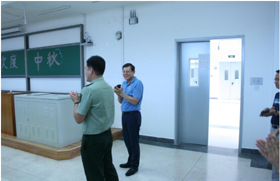 2014年9月8日,beat365亚洲版官网党委书记刘志新教授与党委副书记王喜忠老师来到沙河校区,与新生军训学员欢度中秋。