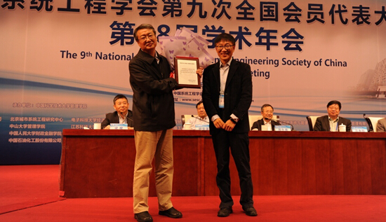 10月25日中国系统工程学会第九次全国会员代表大会暨第18届学术年会在安徽省合肥市政务中心大会堂隆重举行,黄海军教授成为 “系统科学与系统工程理论贡献奖”的唯一获奖者(奖金1万元)。